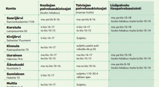 Toukokuun alusta itsepalveluasiointi laajenee myös Viitasaaren Vaarinvuoren lajitteluasemalle. Itsepalveluasiointi on tämän muutoksen myötä mahdollista kahdeksassa toimipisteessä. Toukokuun alussa avautuvat...
